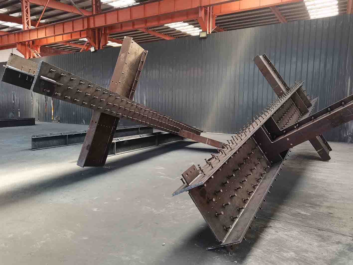 主要加工制造各種輕重鋼結構件、橋梁、設備結構件、彩鋼壓型板、c/z鋼檁條等鋼結構件。